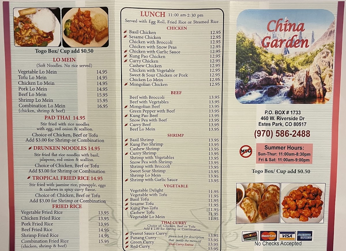Customers appreciate the generous portions, making it ideal for sharing. While currently offering takeout only, patrons can relish their meals outdoors amidst the picturesque beauty of Estes Park. The warmth of owners Lee and her husband enhances the dining experience, making each visit memorable. With a consistent menu and dedicated service, China Garden is a must-try for anyone craving authentic Asian flavors in a cozy mountain setting.